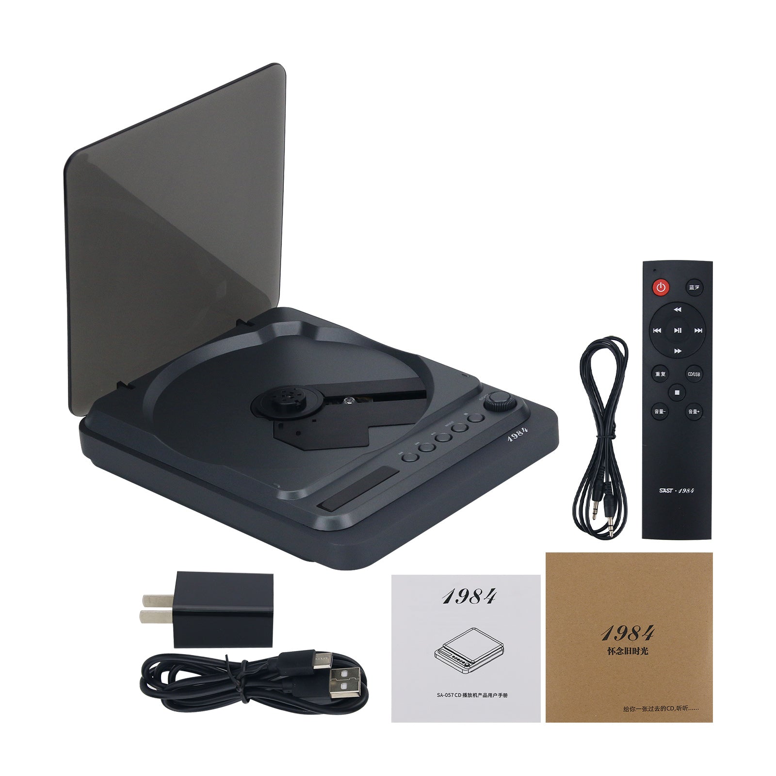 Grey SAST SA-057 Portable Mini CD Player HiFi Lossless Sound Quality Wireless Remote Control Bluetooth4.2 Transmitting