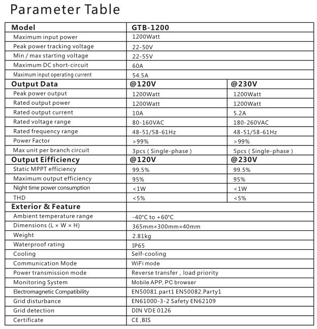 Grid Tie Inverter Solar Grid Tie Micro Inverter Output Power 1200W For Solar Panel GTB-1200