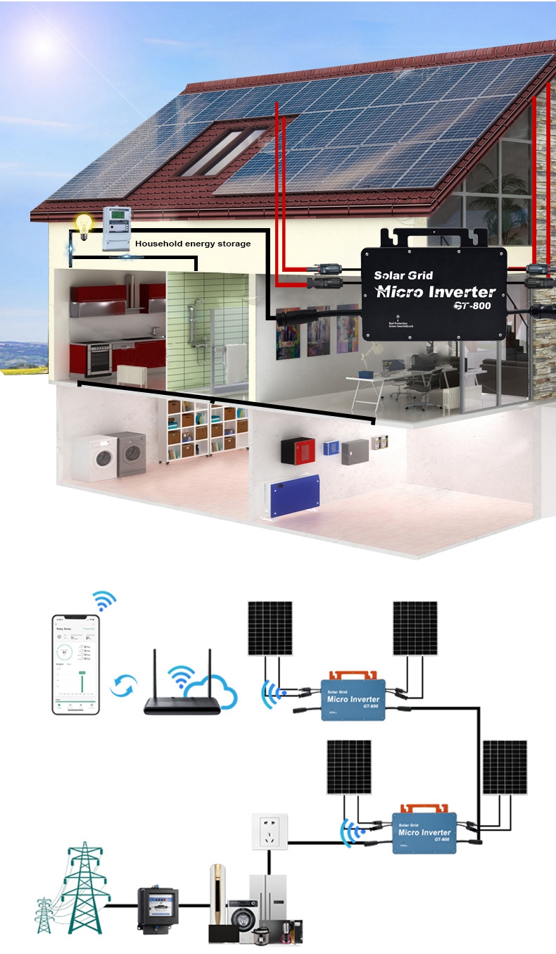 GT-800 110V/230V 800W Solar Grid Micro Inverter MPPT Intelligent WiFi Control IP66 Support Remote APP Upgrade