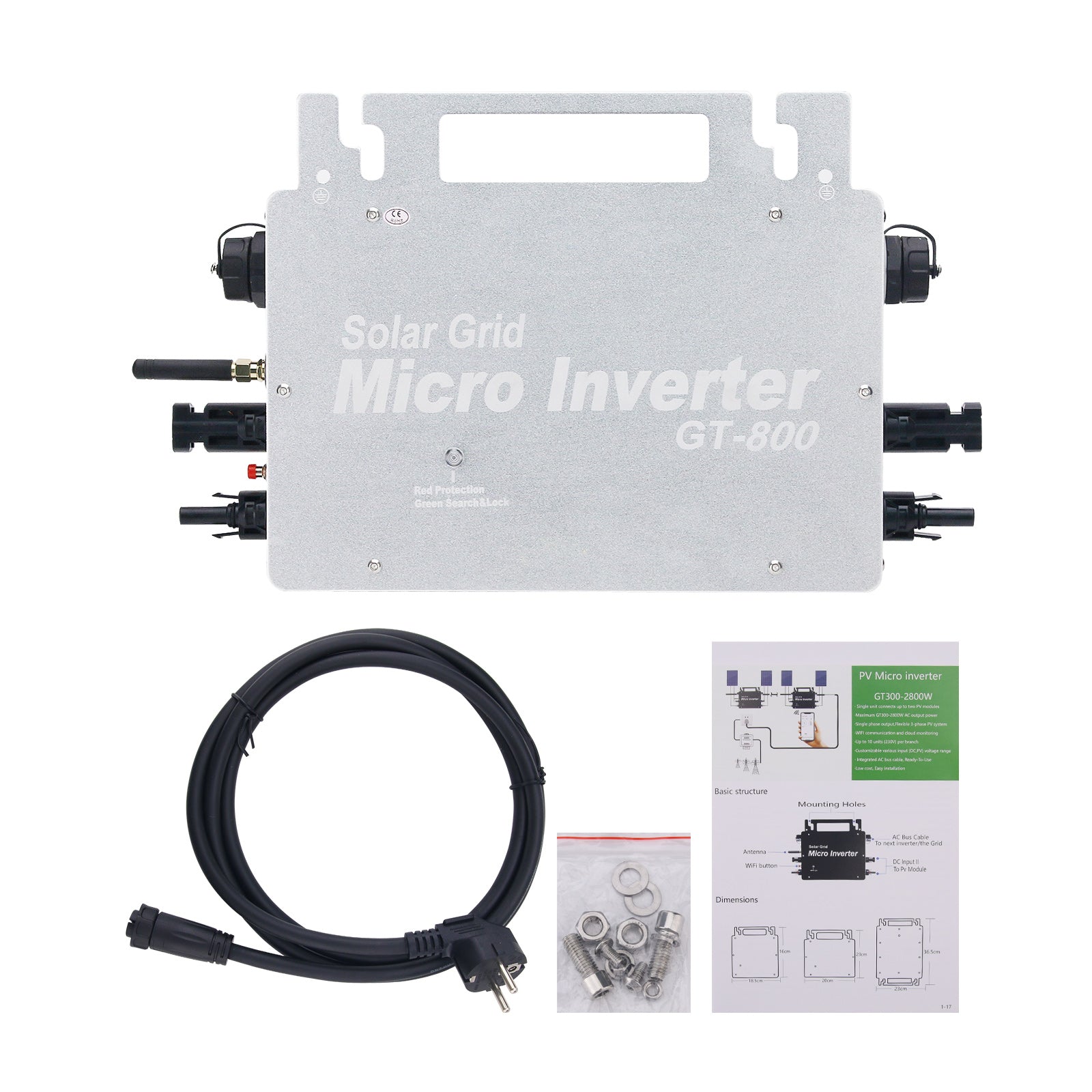GT-800W Silver Solar Grid Micro Inverter IP66 Waterproof Solar Inverter Enables Phone APP Monitoring
