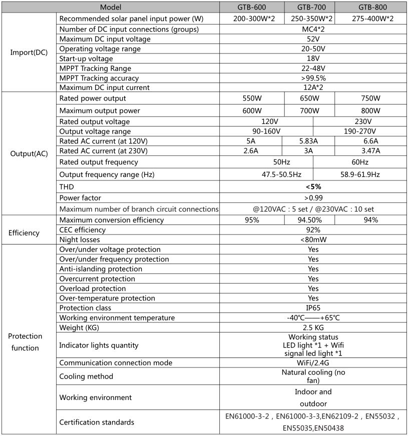 GTB-800 Smart Micro Inverter Smart Grid Inverter Maximum Output 800W Smart APP Phone Monitoring