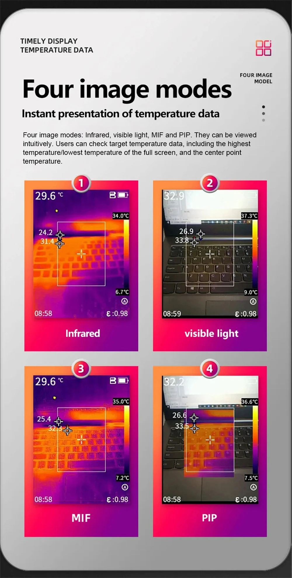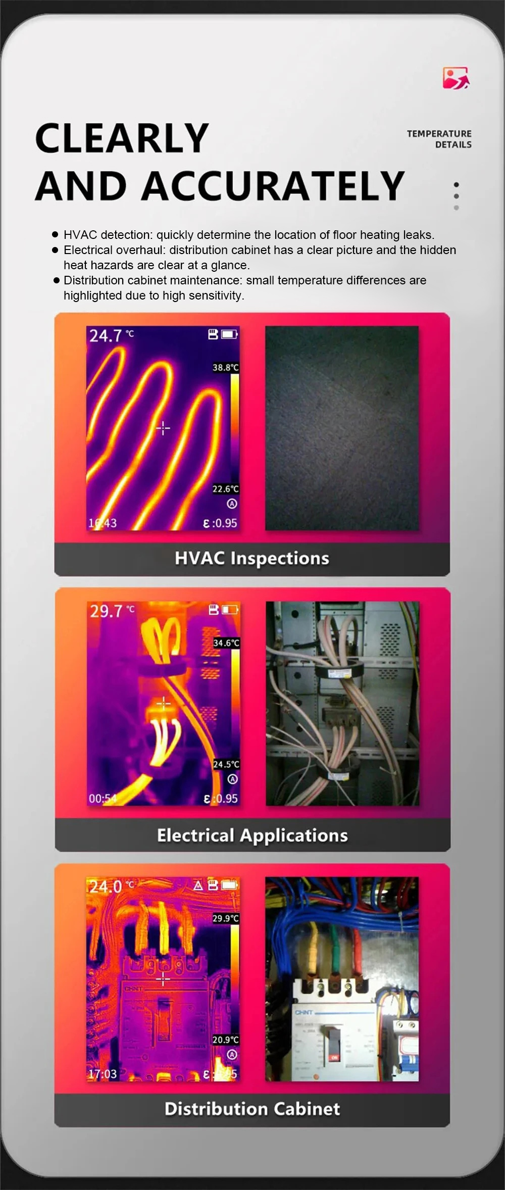 - Turn on in 1 second and use, supporting full-frame temperature measurement