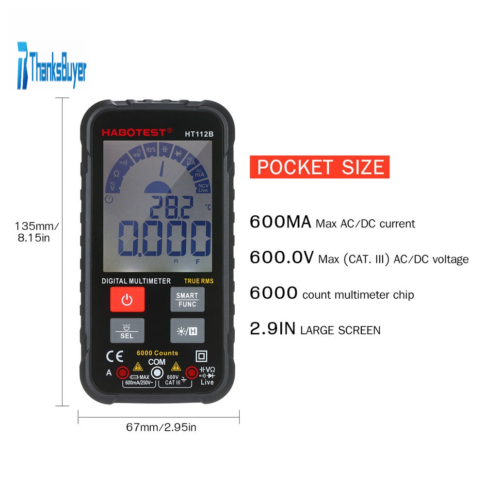 - TRUE RMS measurement. HT112B professional intelligent digital multimeter AC bandwidth is 1kHz