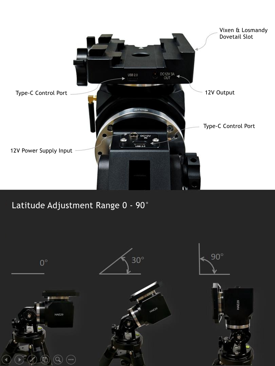 HAE29C EC Version Dual Harmonic Equatorial Mount Support Equatorial/Horizontal Dual Mode with High Precision RA Axis Encoder