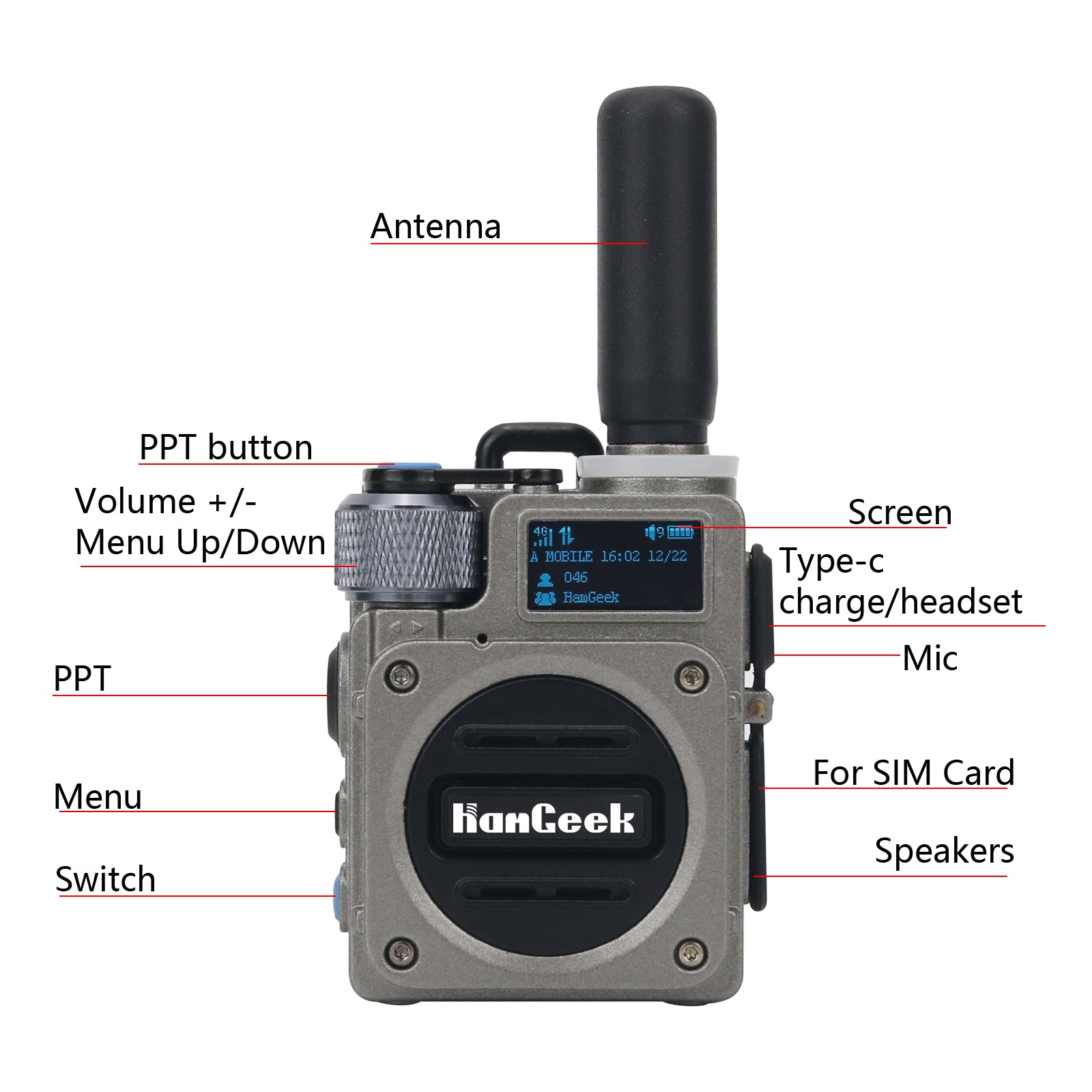 HamGeek G6 Original PTT Radio 4G Walkie Talkie 10W 5000KM 400-470MHz Free Real-PTT Account w/ Earbuds (Light Grey)