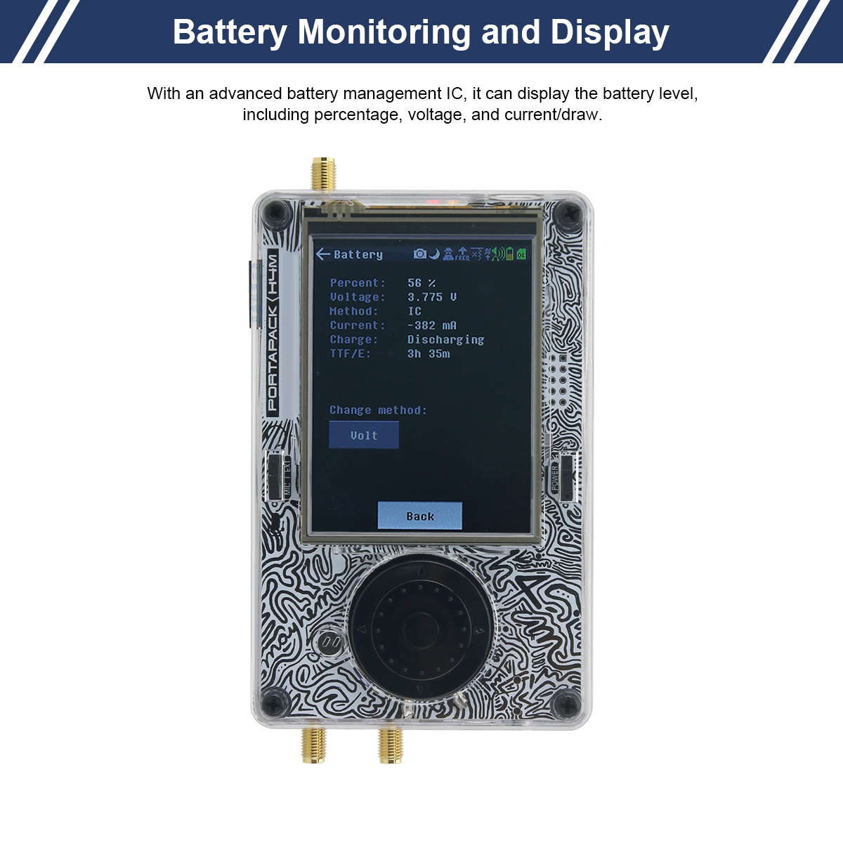 * Advanced battery management IC and battery display: The screen can display the battery level, including percentage, voltage, and current/draw. It is easier to check the battery level.