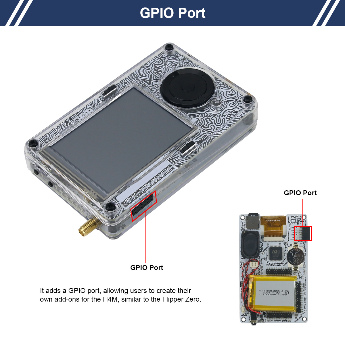 * GPIO port: The new generation H4MS adds a GPIO port, allowing users to create their own add-ons for the H4MS, similar to the Flipper Zero. This is a major step forward and a feature not available in previous versions of Portapack.