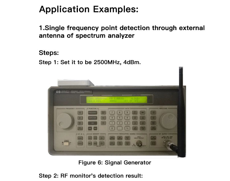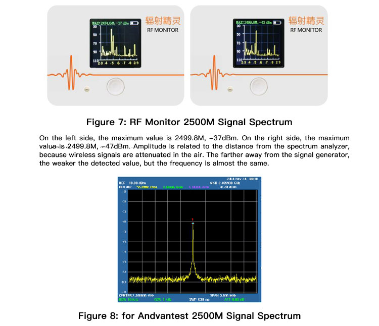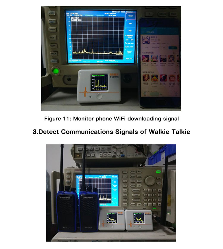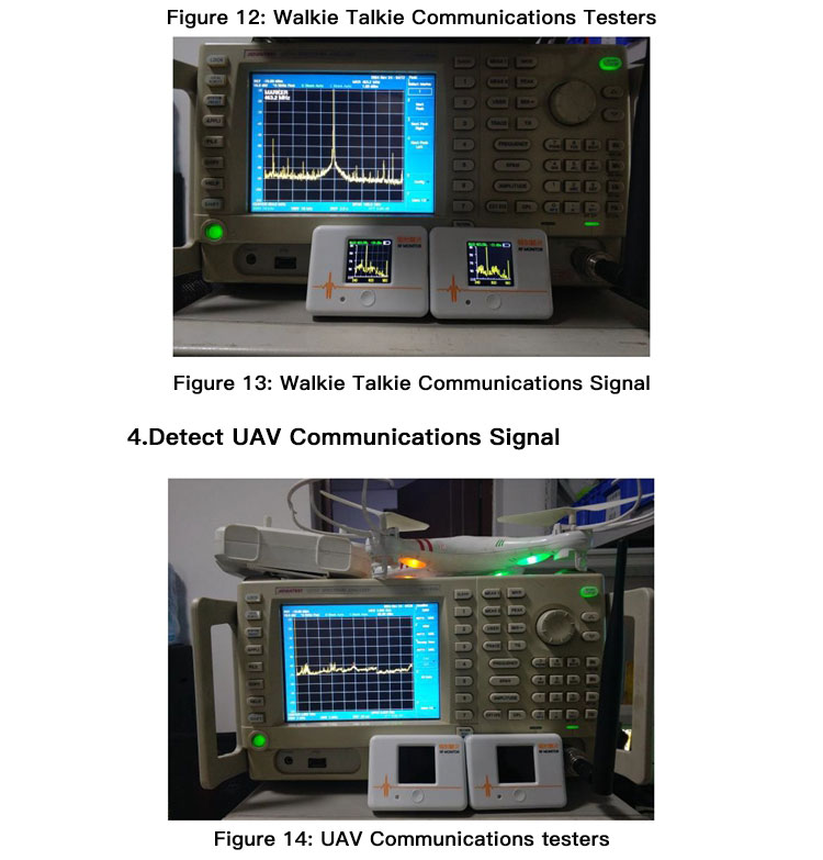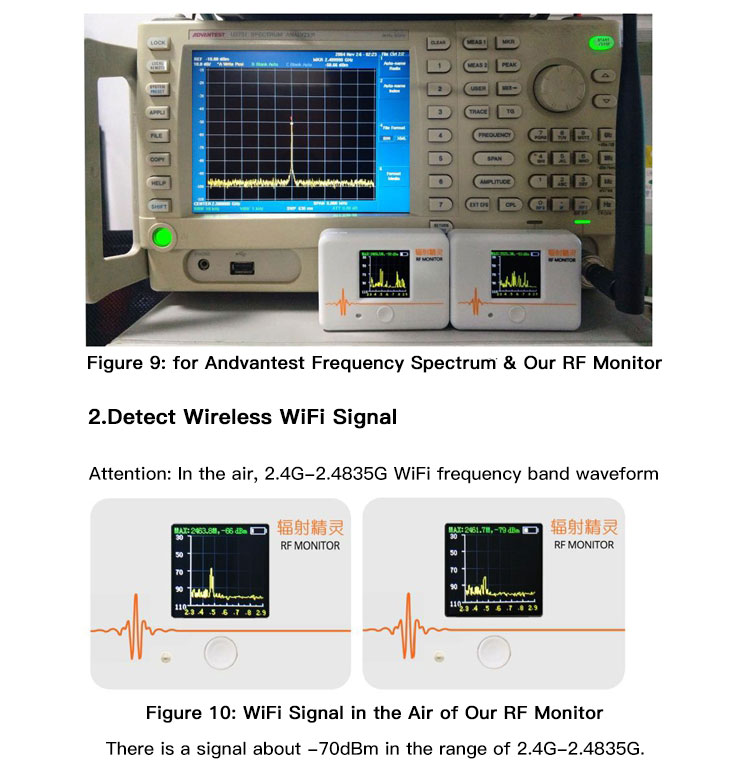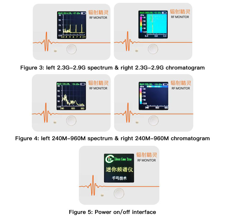 Portable RF Monitor has a built-in antenna and is easy to carry. It can measure the wireless spectrum of 240M ~ 960M and 2300M ~ 2900M, and can measure spectrum graph and chromatogram.