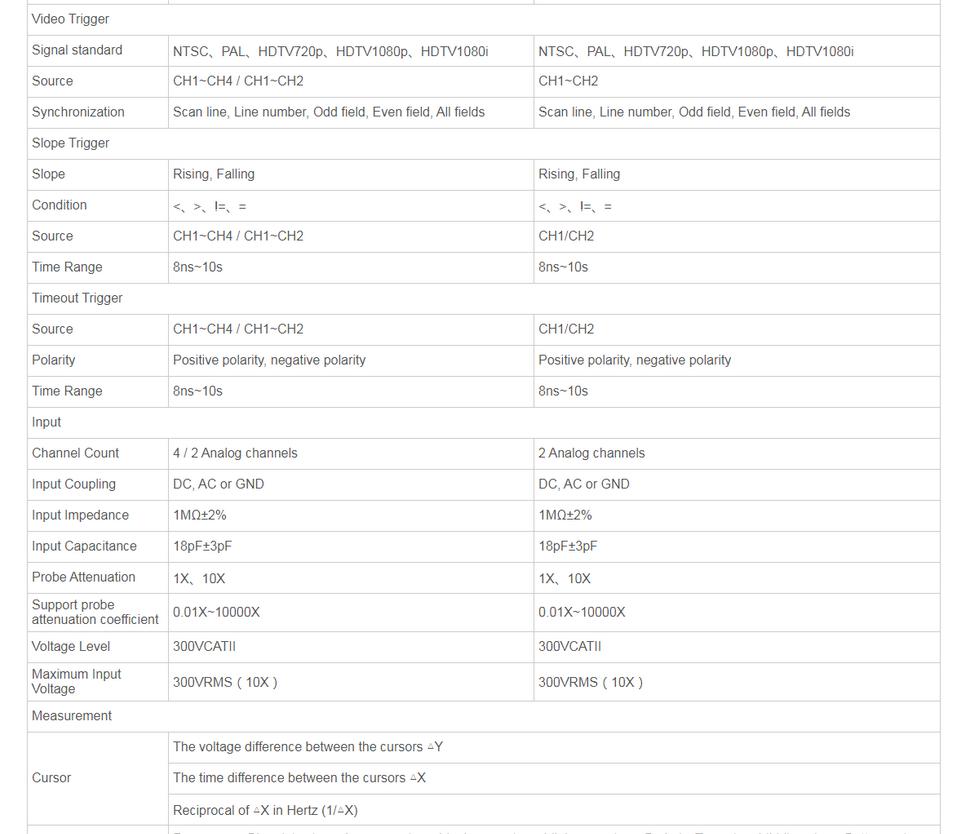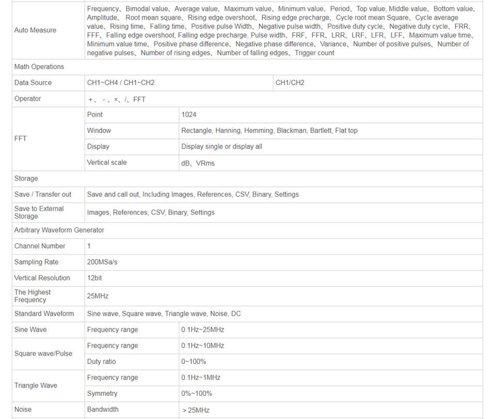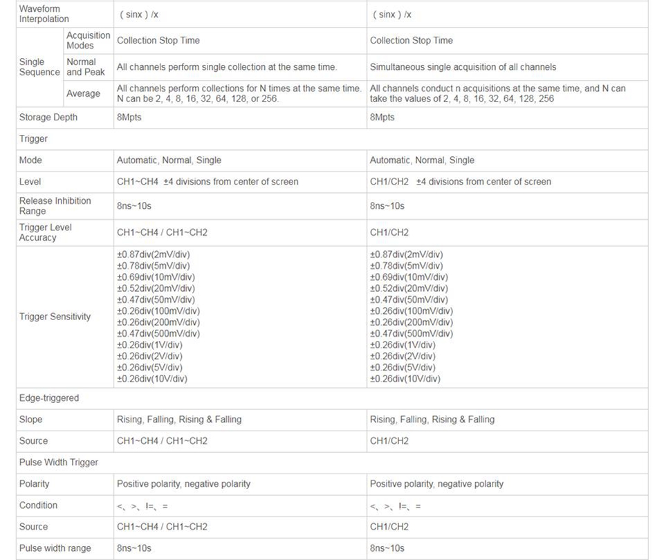 - Standard configuration of 4 or 2-channel oscilloscope, maximum bandwidth of 250MHz, maximum sampling rate of 1GSa/s, 8M large storage.