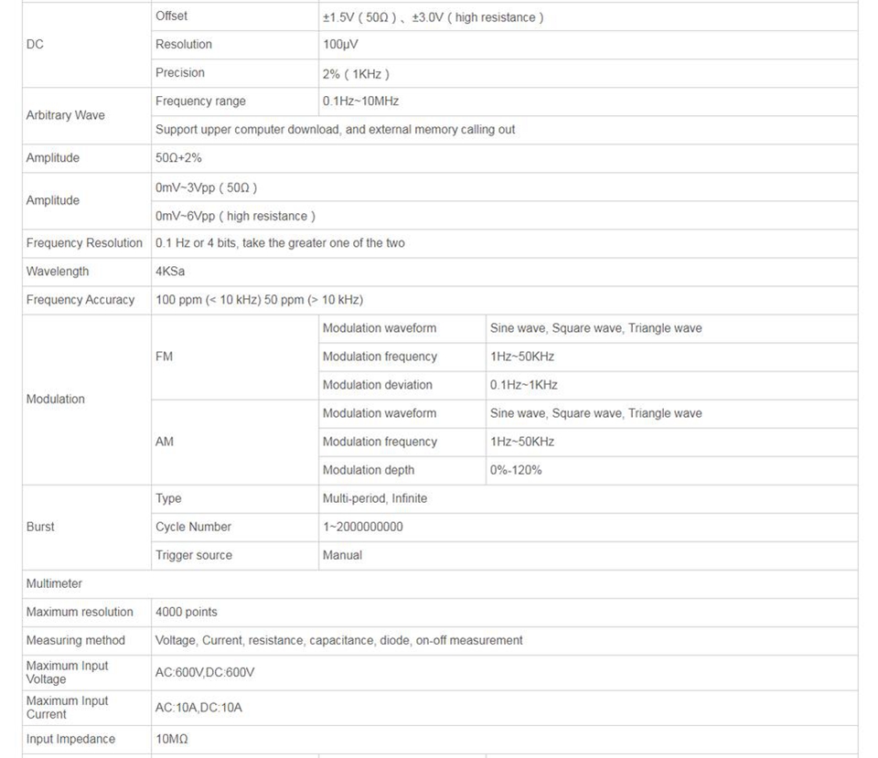 - A variety of arbitrary waveforms are built into the signal generator, and the highest output frequency is 25MHz