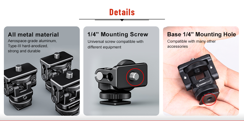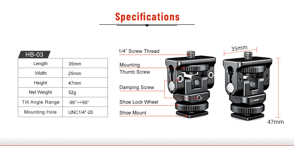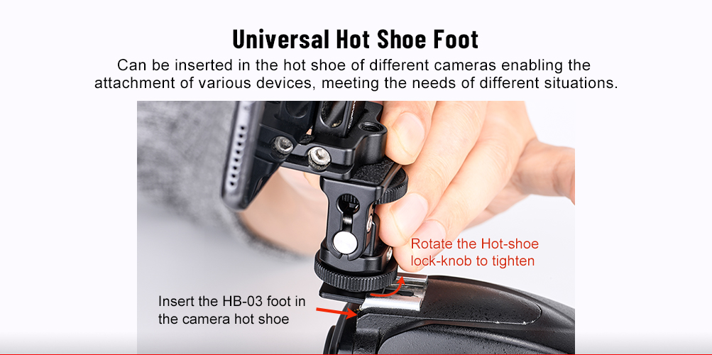 HB-03 Hot Shoe Pan Tilt Head Gimbal Head For Mirrorless Camera SLR Camera Tripod Vlogger Photograph