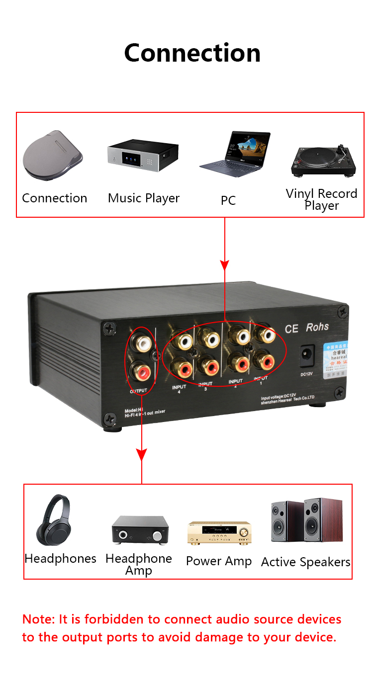 - Support audio equipment including CD player, music player, PC and vinyl record player