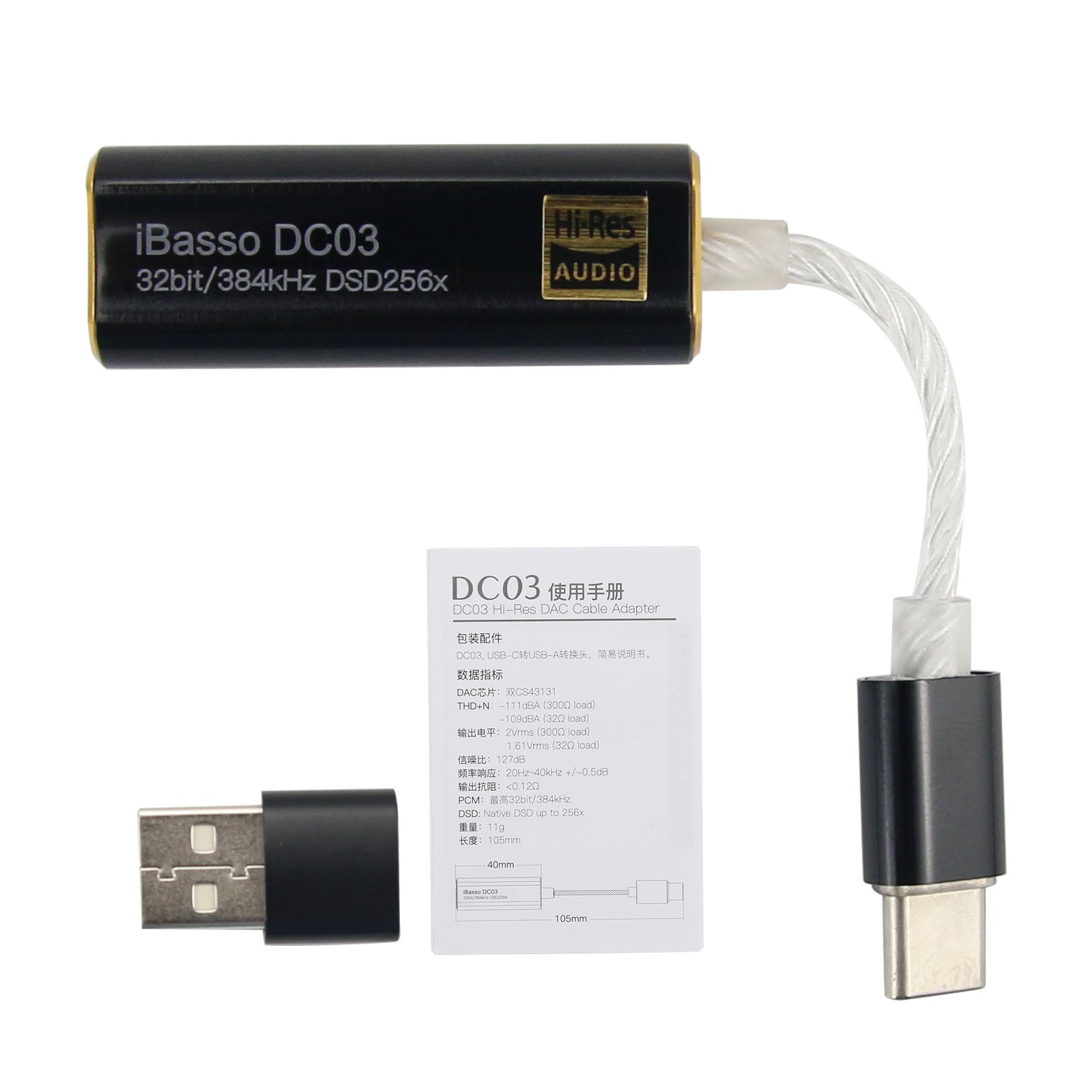 iBasso DC03 DAC Headphone Amplifier Type-C To 3.5MM Phone Headphone Cable External Sound Card Black