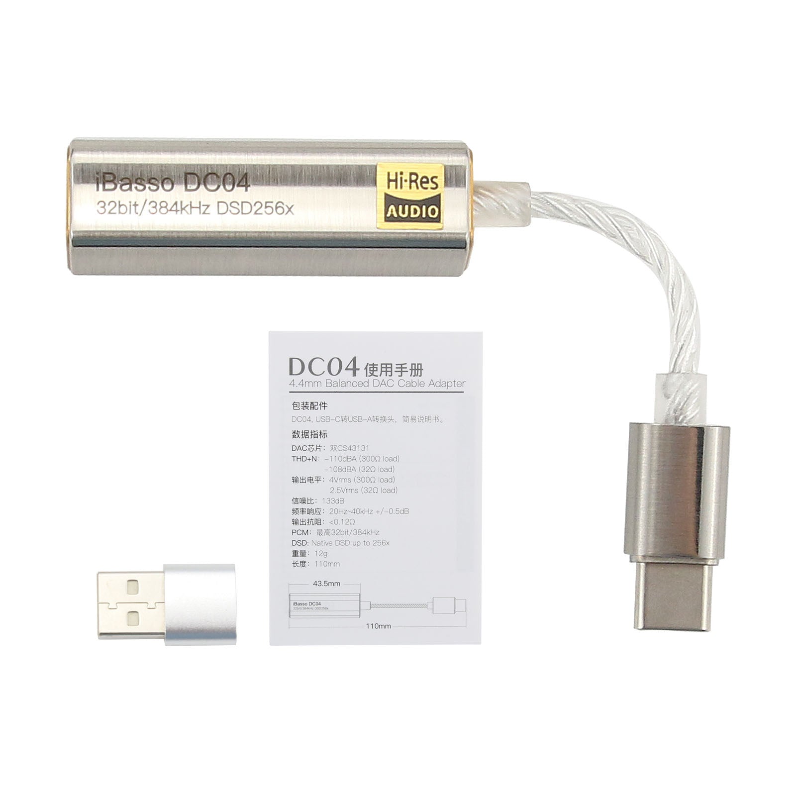 iBasso DC04 Headphone Amplifier DAC Type-C To 4.4MM Phone HiFi Headphone External Sound Card Silver