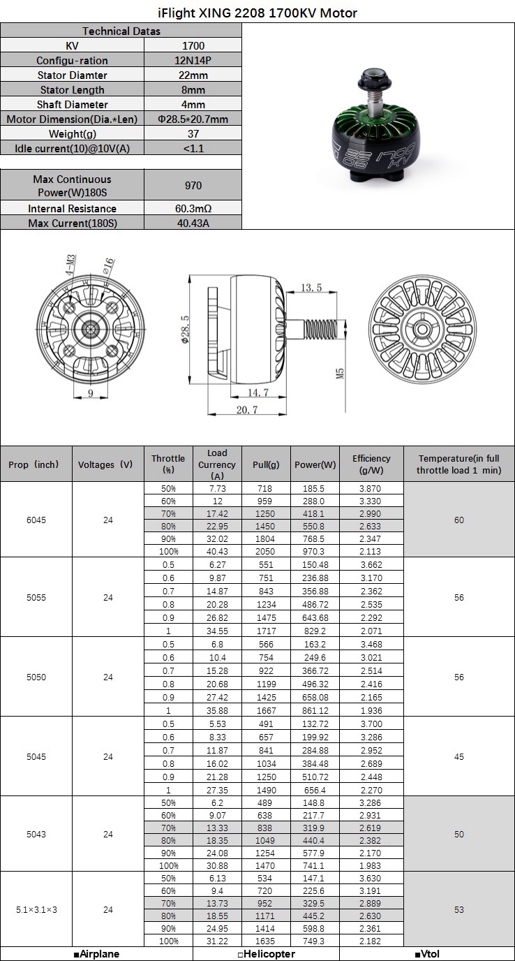 iFlight XING 2208 1700KV Brushless Motor 3-6S FPV Brushless Motor for RC FPV Racing Drone