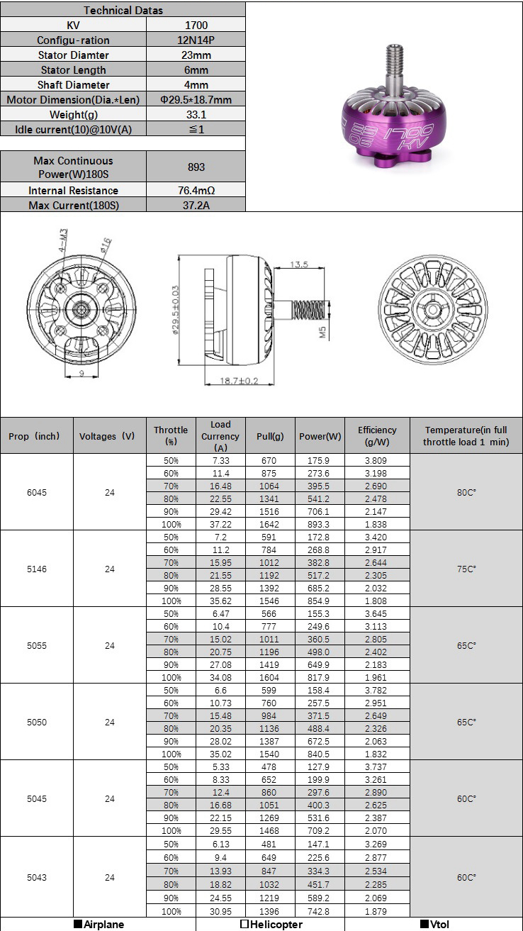 - 50%-80% optimal throttle output, best efficiency