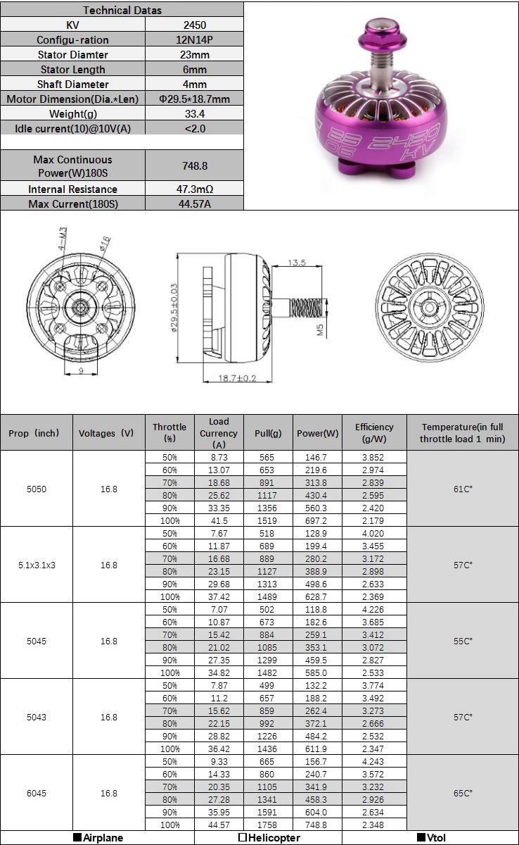 - 50%-80% optimal throttle output, best efficiency