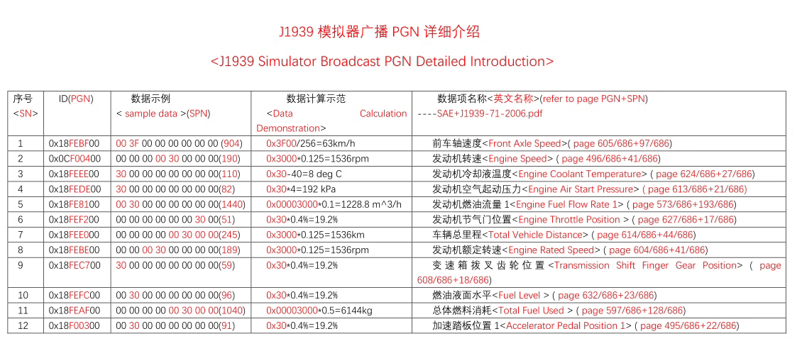 - The J1939 simulator supports the simulation of nearly 200 parameters.
