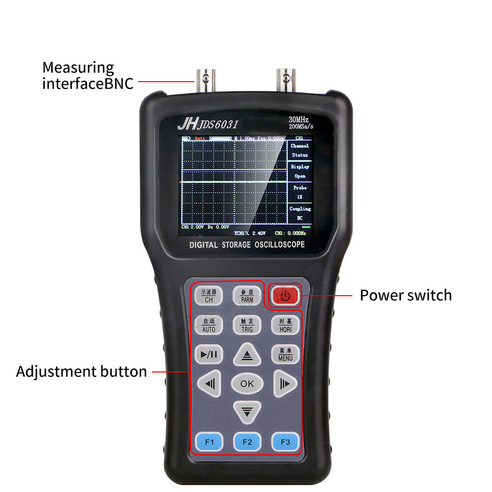 JDS6031 Hand-held Oscilloscope 1CH 30M 200MSa/S with USB Charger Probe Cable Set Oscilloscope