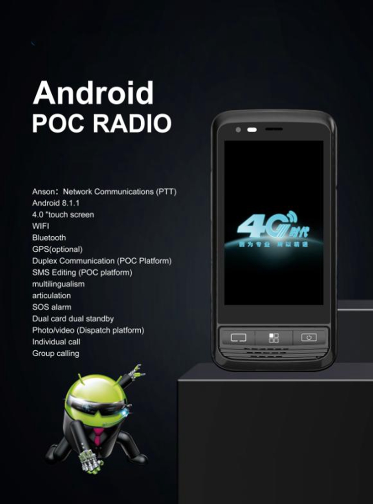 JT007 Handheld Walkie Talkie WiFi 4G POC Radio Duplex Communication with 4-inch Touch Screen for Android 8.1.1