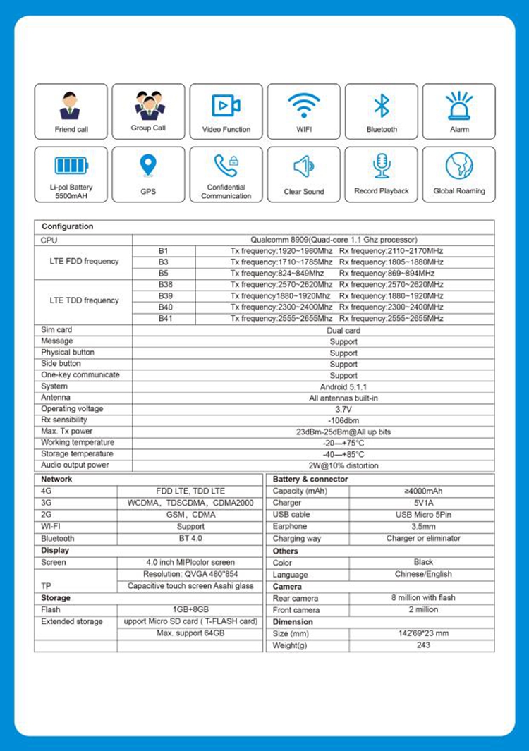 - Extended storage: support Micro SD card (T-FLASH card), Max. Support 64GB