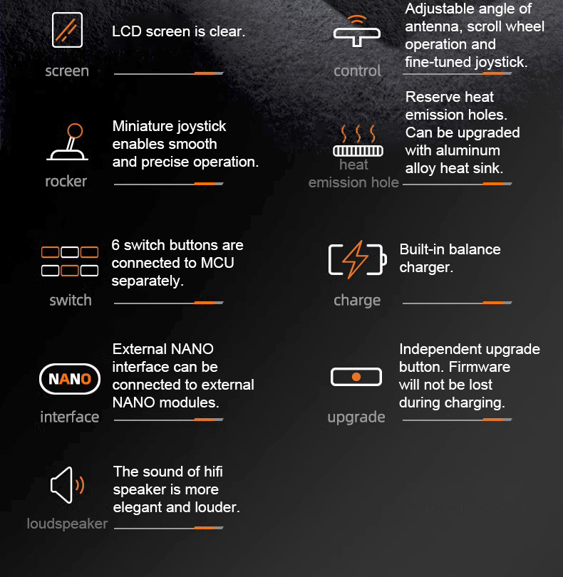 - It is suitable for receivers such as D8, D16, S-FHSS, Hitec, Radiolink and Esky.