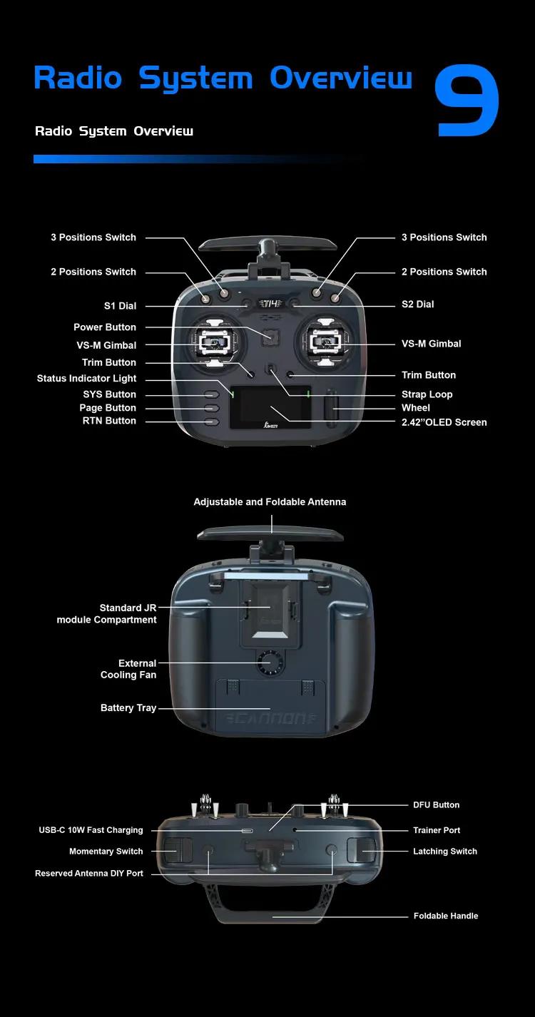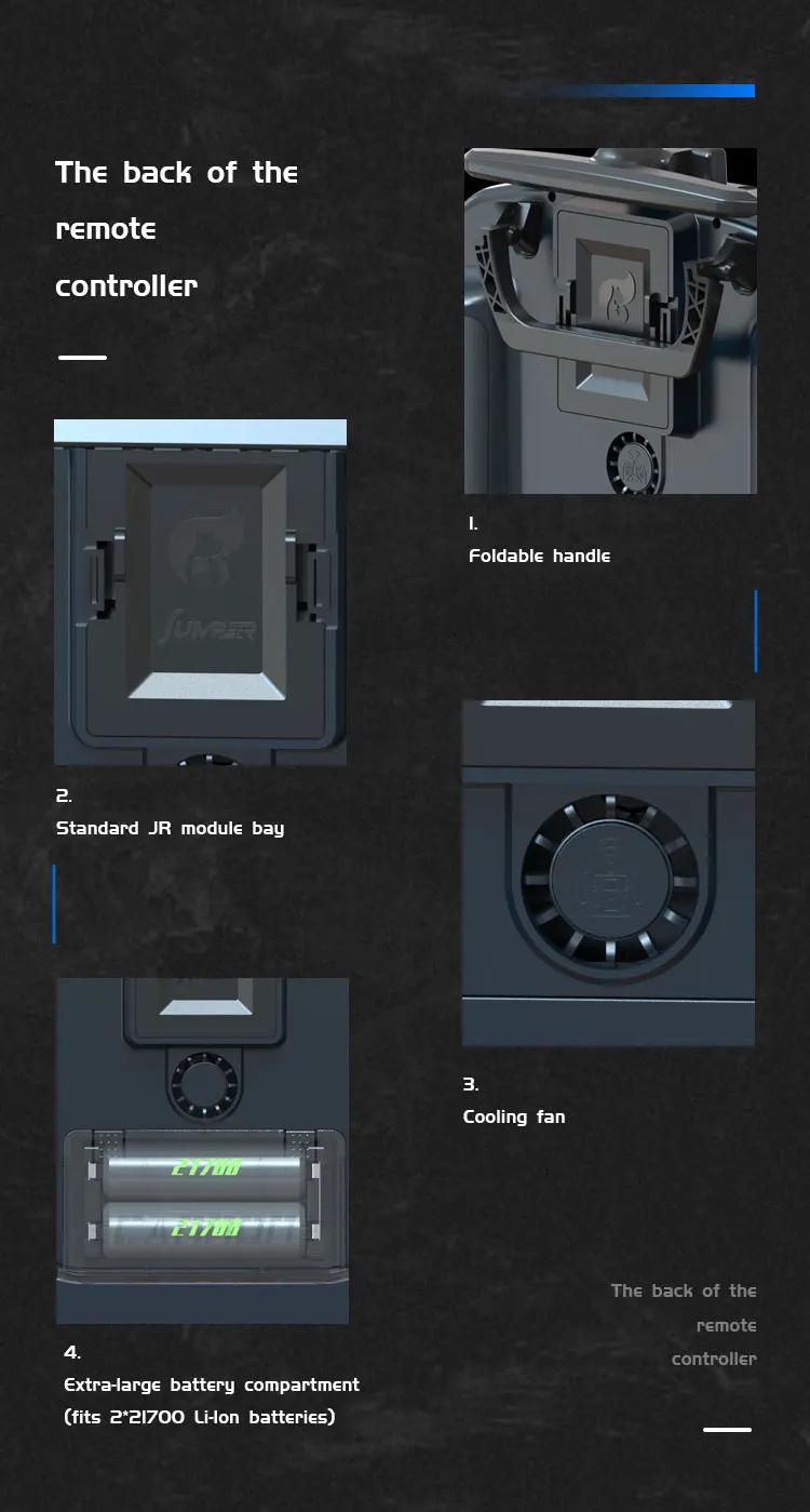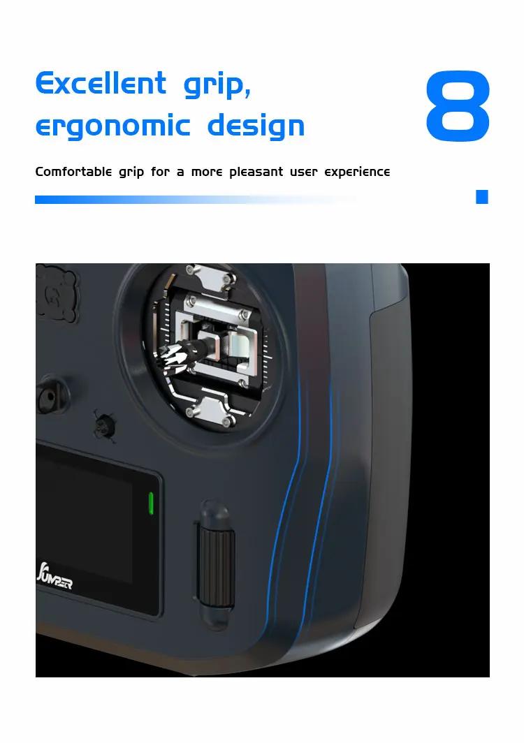 - External module interface: standard JR module slot (compatible with JR/FrSKY/Crossfire)