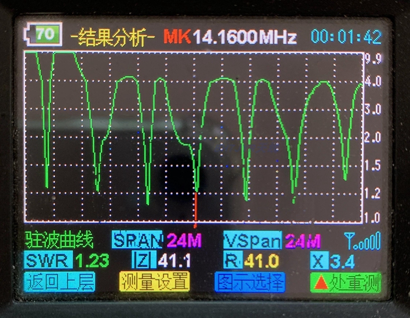- Configuration: 2.5 square 20m wire, 20m rope, 1:64 Balun
