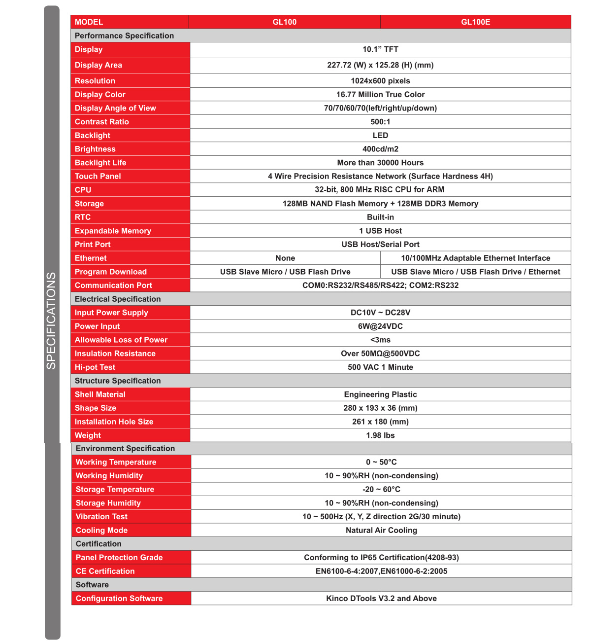 Kinco Green Series GL100 10.1" 1024x600 Pixels HMI Display Human Machine Interface HMI Touch Screen
