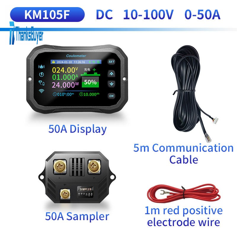 KM105F 10-100V 0-50A Wireless Remote Control Coulometer Lithium Battery Bidirectional Voltmeter Ammeter