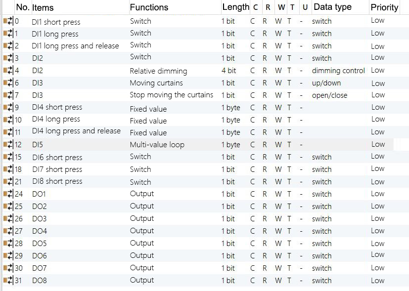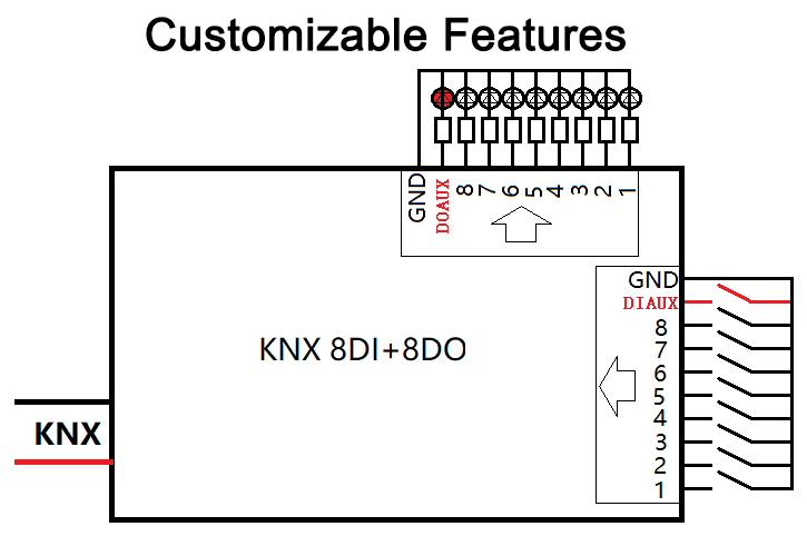 - KNX 8DI+8DO module with 8 digital inputs and 8 digital outputs