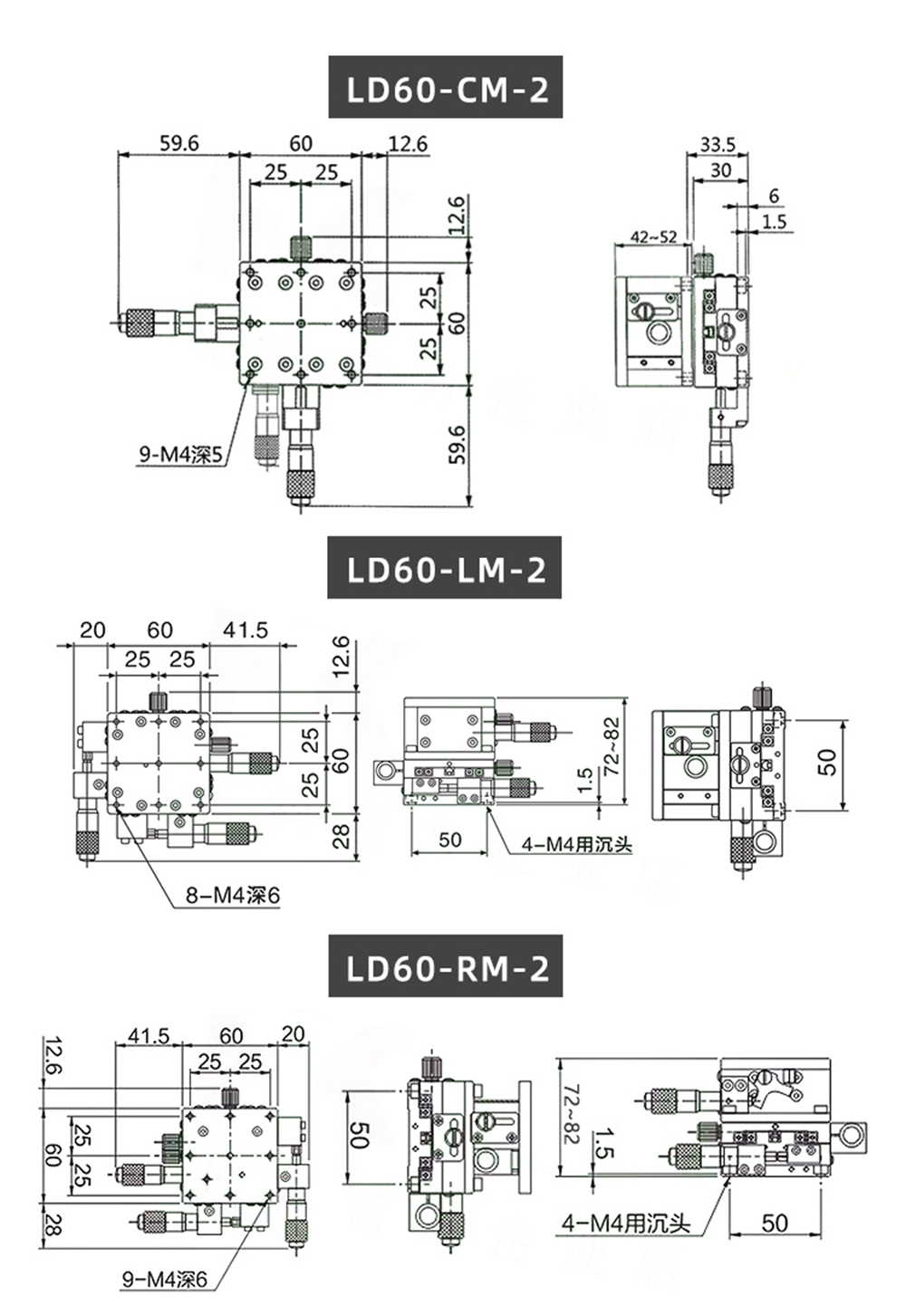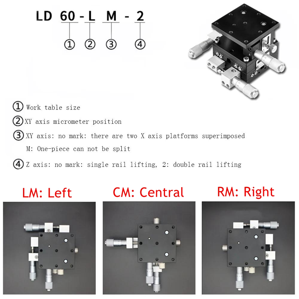 LD60-CM-2 XYZ Axis Three-dimensional Trimming Platform High Precision Manual Sliding Table Horizontal Lifting