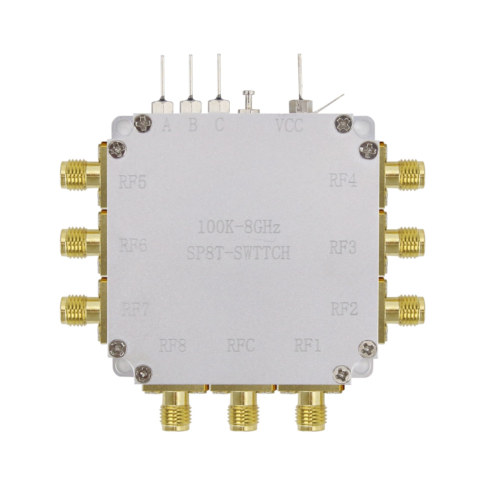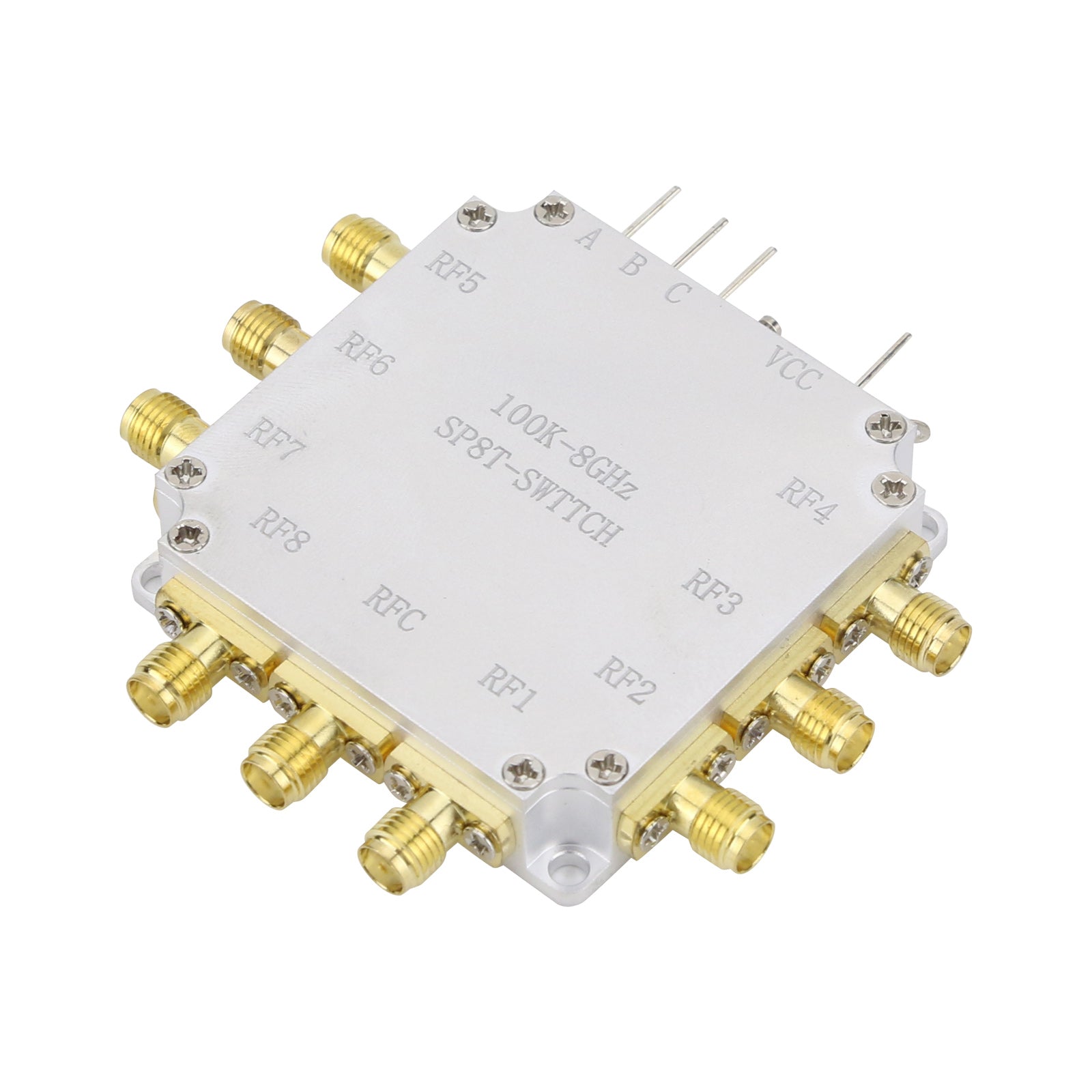 LF-8GHz 100K-8GHz SP8T Switch RF Switch with Metal Shell High Isolation Low Insertion Loss