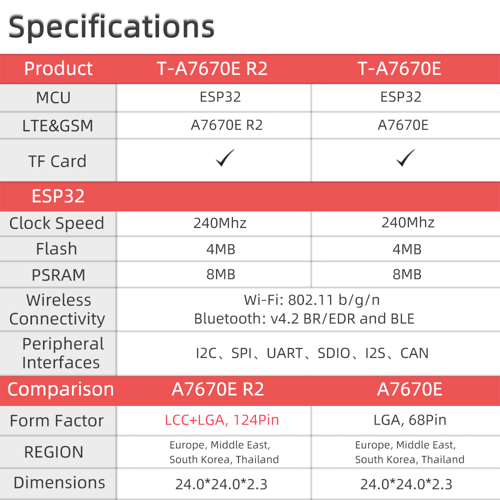 - 1 x T-SIM-A7670E Module