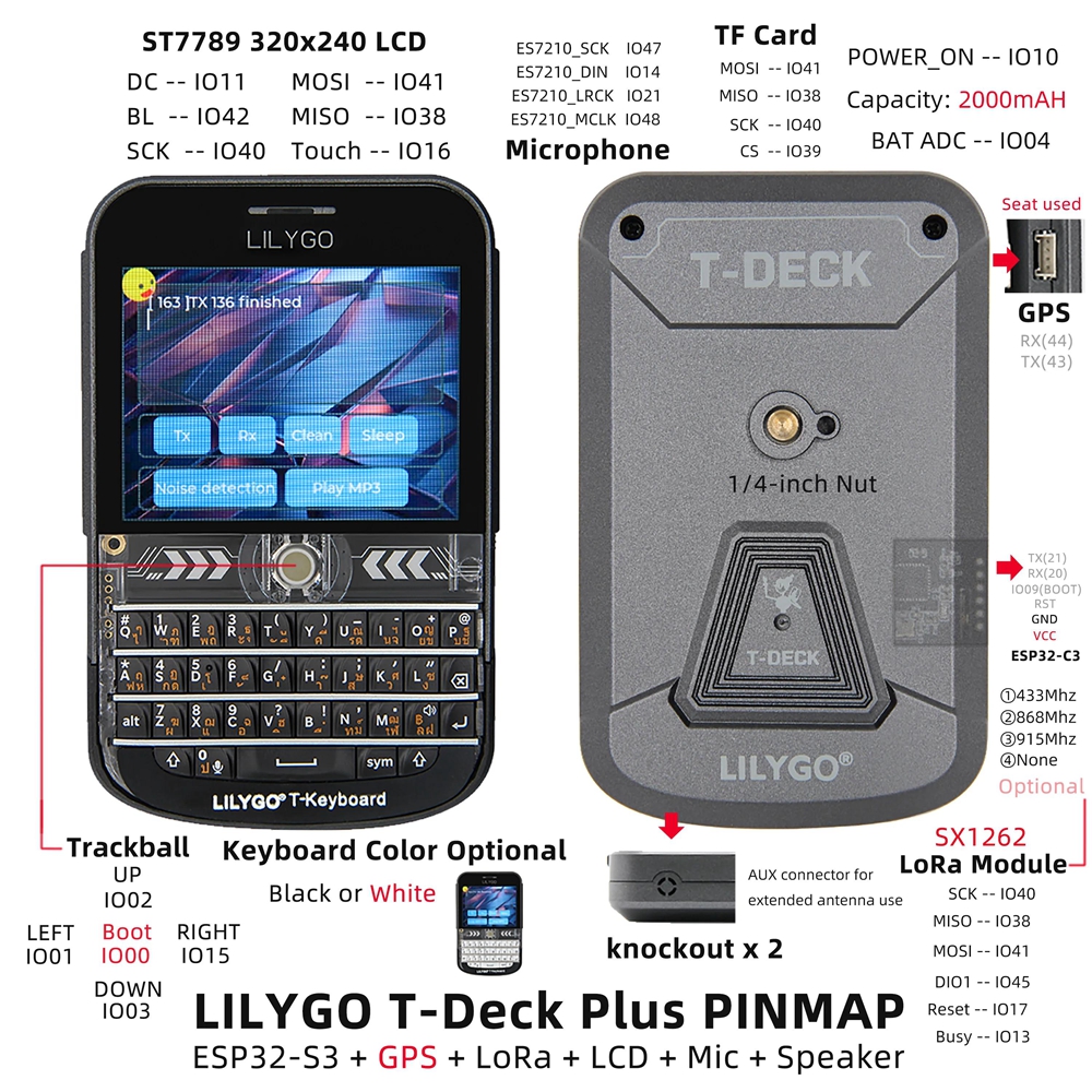 LILYGO T-Deck Plus 915MHz ESP32-S3 Development Board GPS Long Range Communication Module with External Antenna (Black Keyboard)
