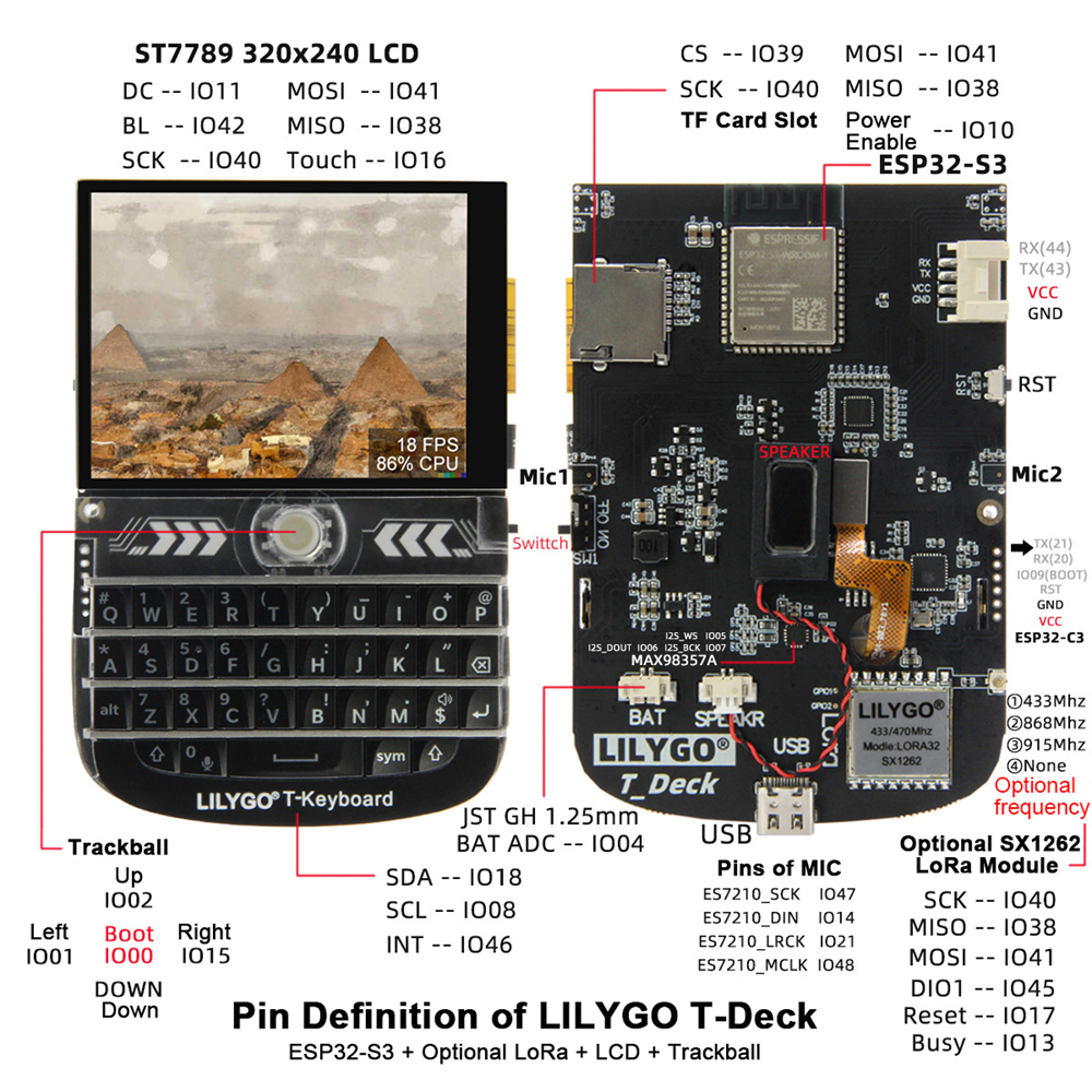 LILYGO T-Keyboard T-Deck ESP32-S3 Development Board w/ 2.8" Screen (H642-Mesh Black Keyboard 915MHz)