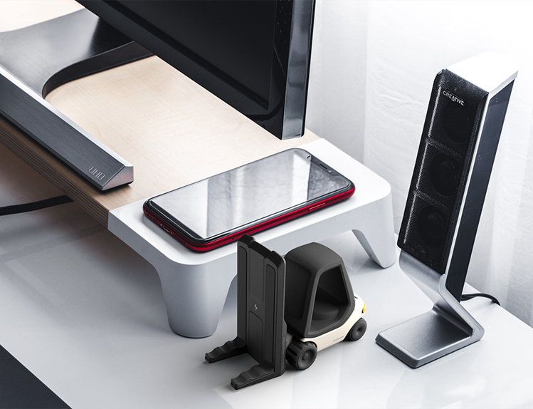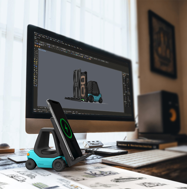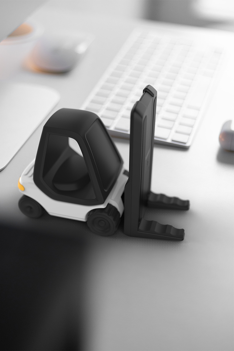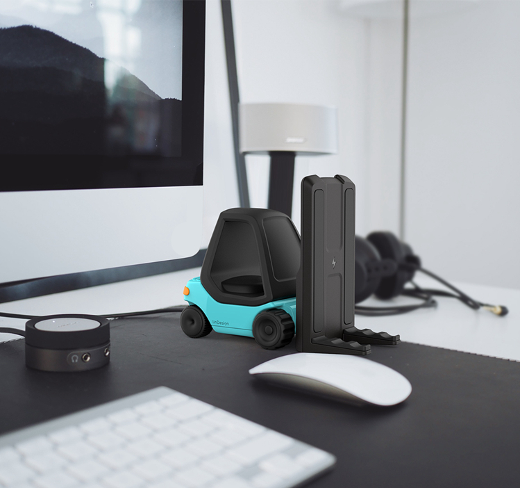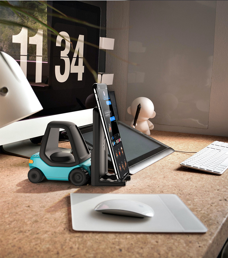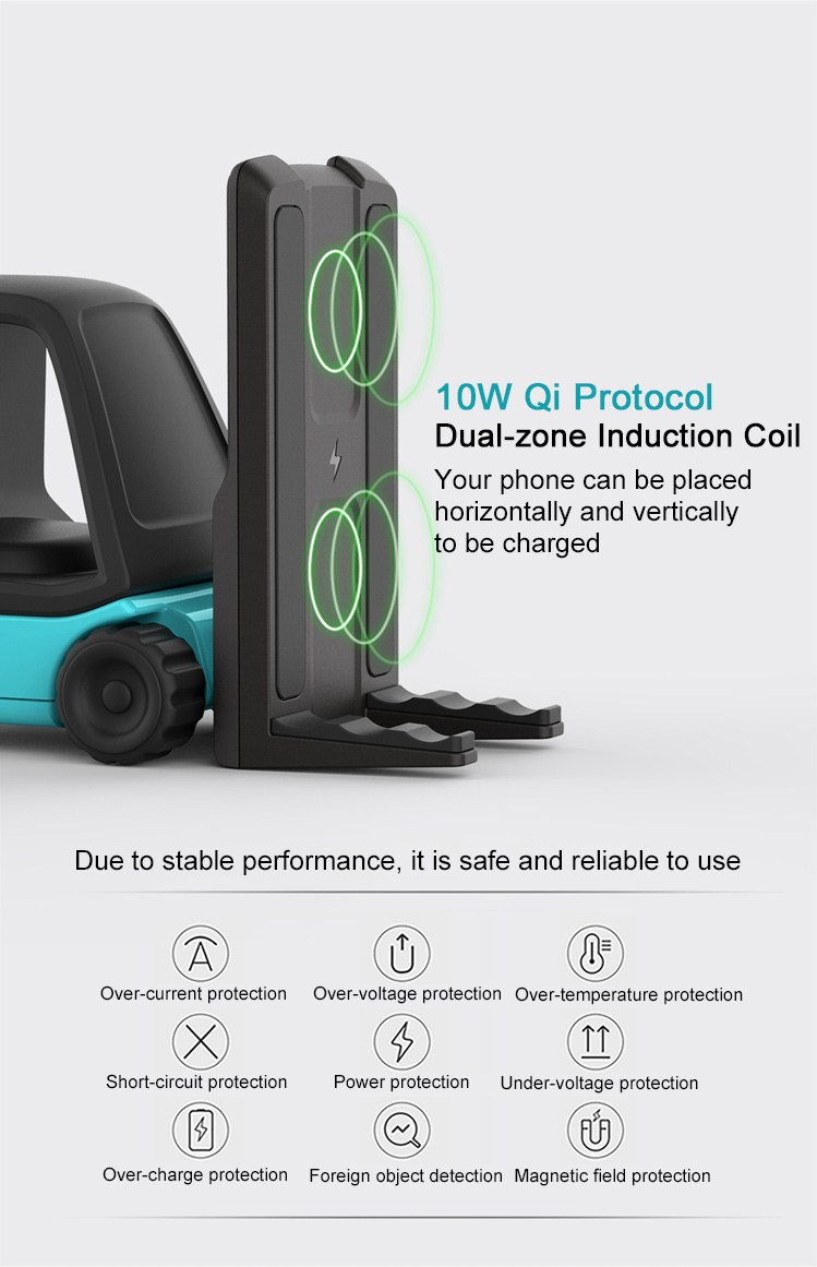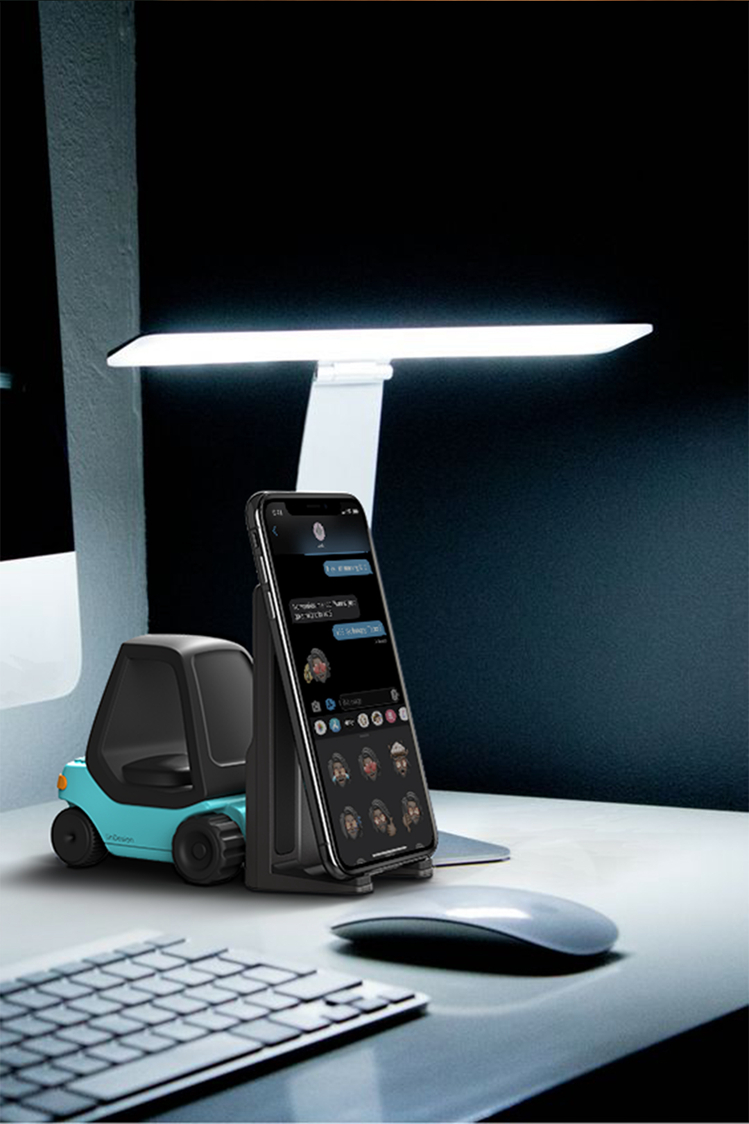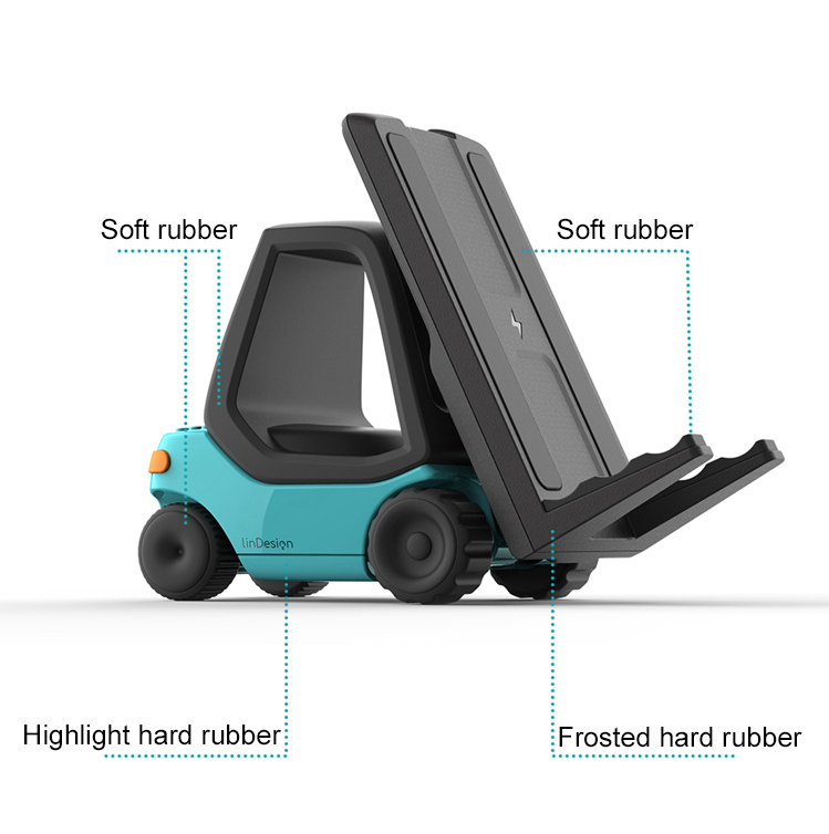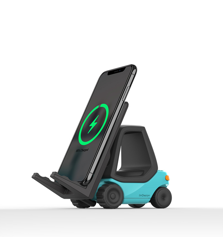 LinDesign Forklift Desktop Phone Stand Desk Phone Holder Wireless Charger (White) for Apple Huawei