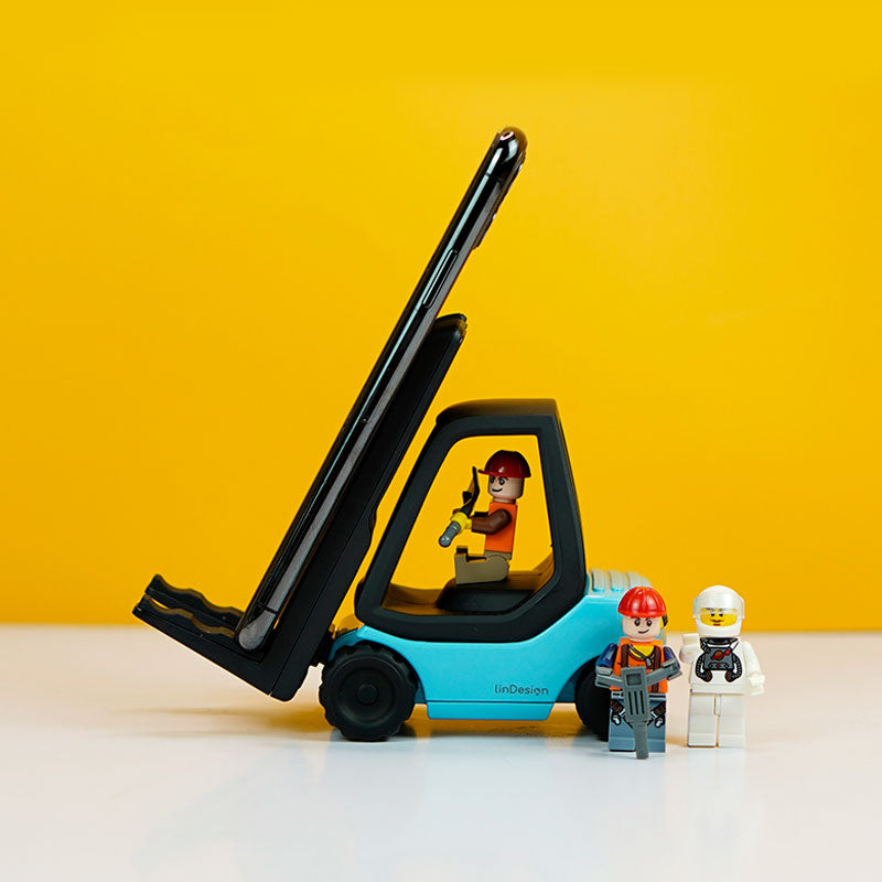 LinDesign Forklift Desktop Phone Stand Phone Holder Wireless Charger (Blue) + 3.0 Fast Charging Plug