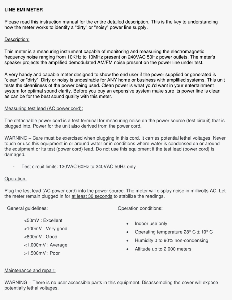 - Your speaker plays the sound of EMI and demodulates the amplitude to identify the source of EMI (e.g. AM or shortwave radio, electric motor and arc)