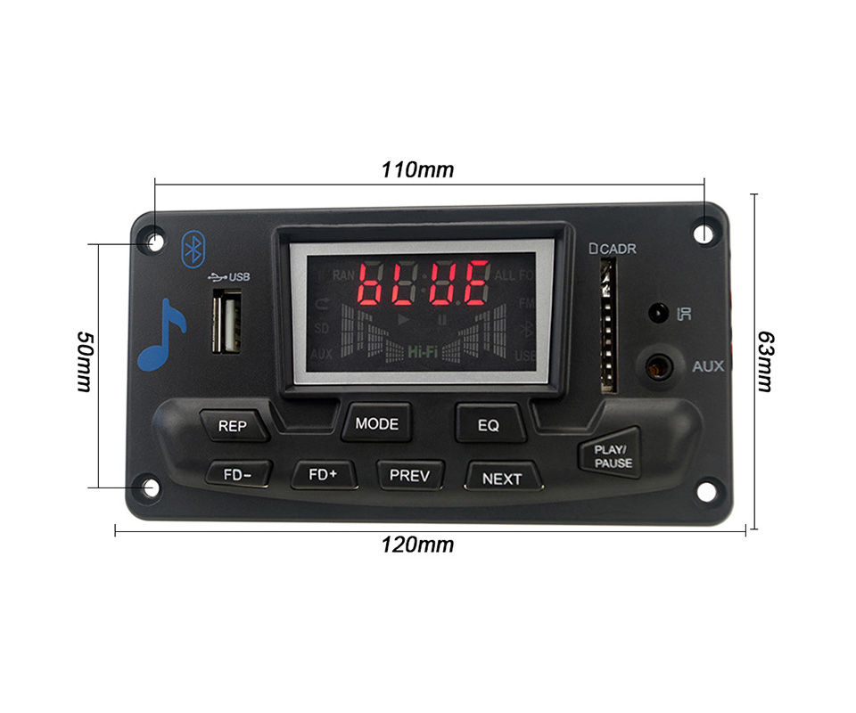 5. Support FM, frequency band is 87MHz-108MHZ.