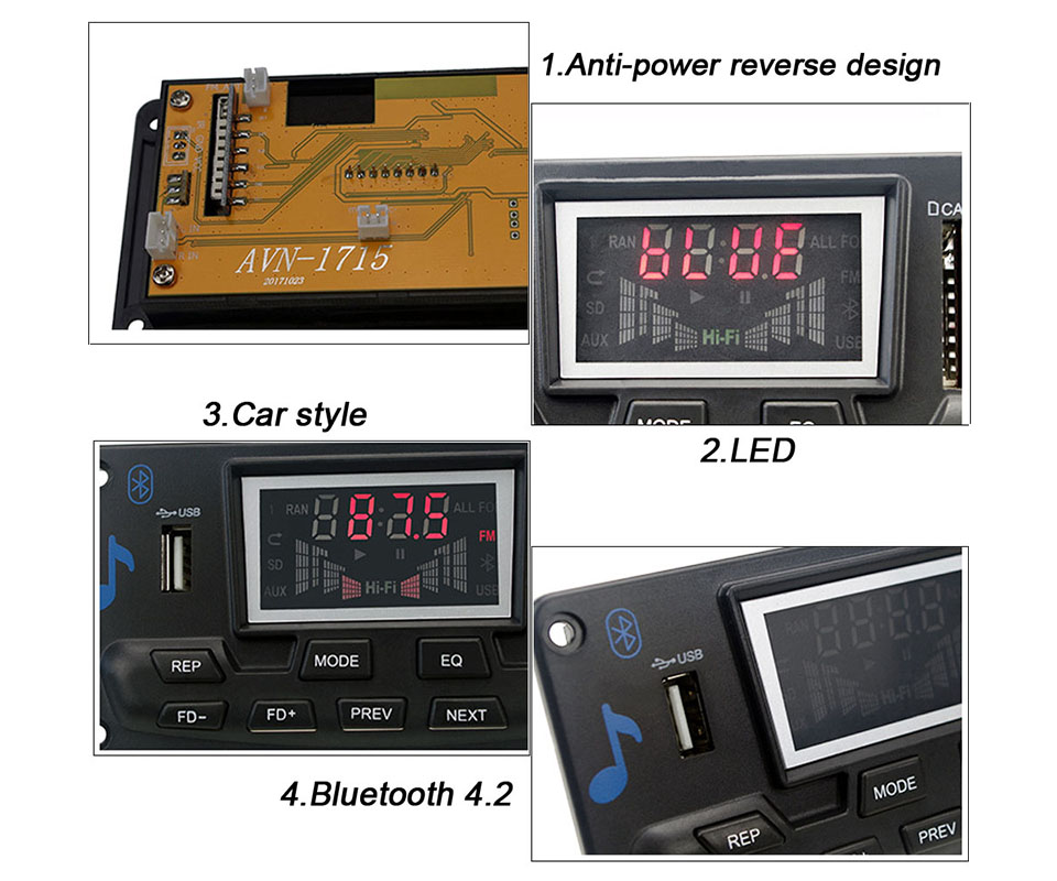 By default, the main volume is the memorized volume before shutting down (30 levels in total), the default BT state, USB/SD support after plug-in priority, power off song /radio stations and status/volume memory, all states are true spectrum.