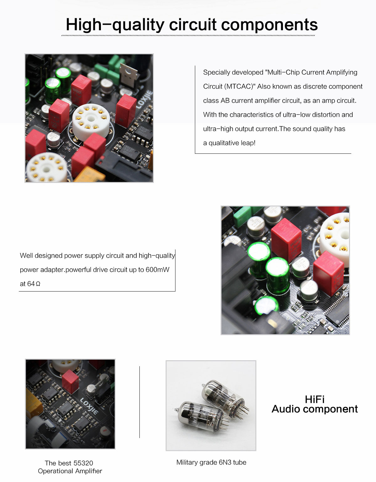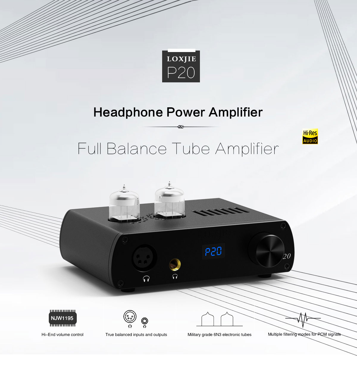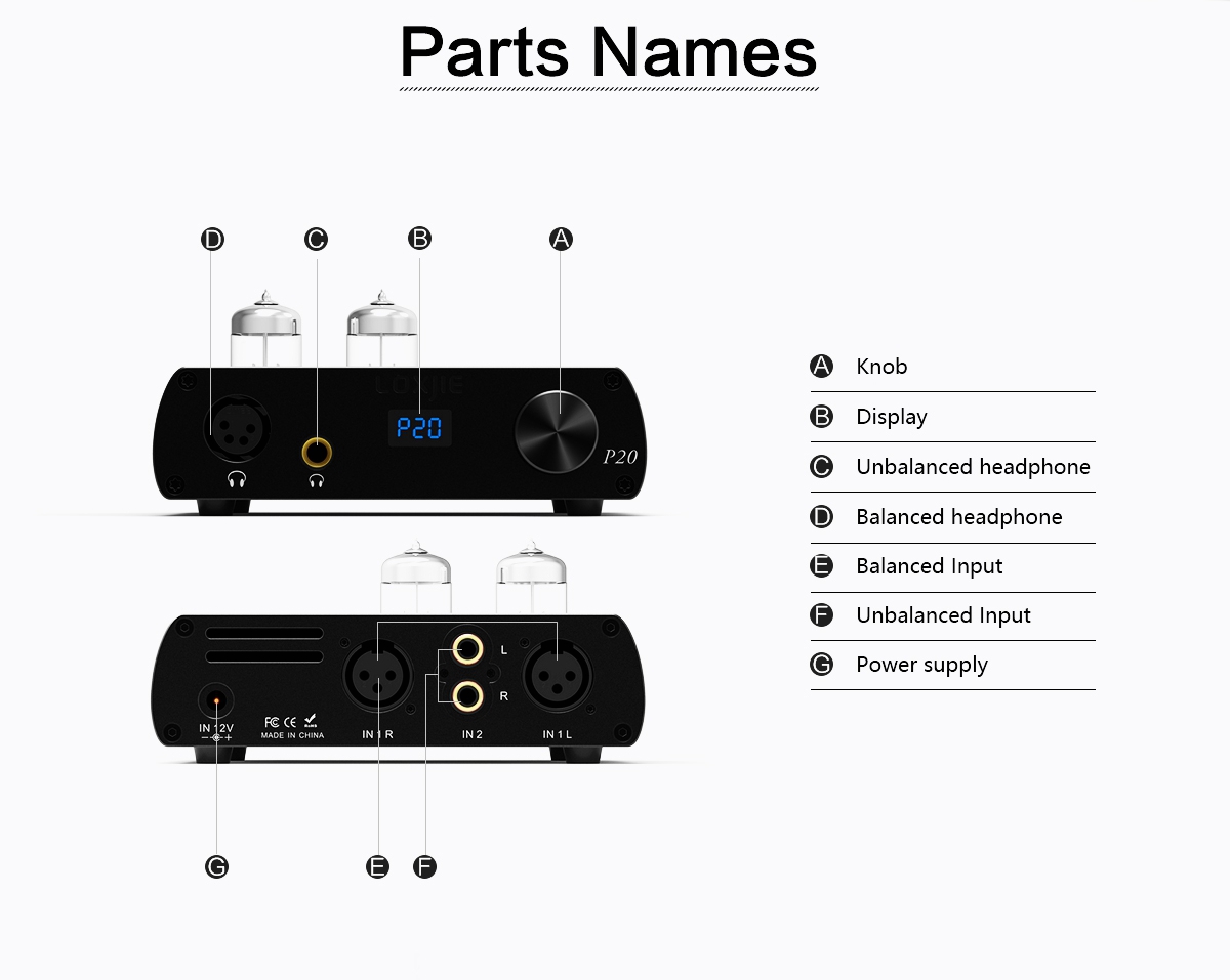 LOXJIE P20 Fully Balanced Headphone Amplifier Hifi Tube Amplifier 6N3 Desktop Headphone Amp Black