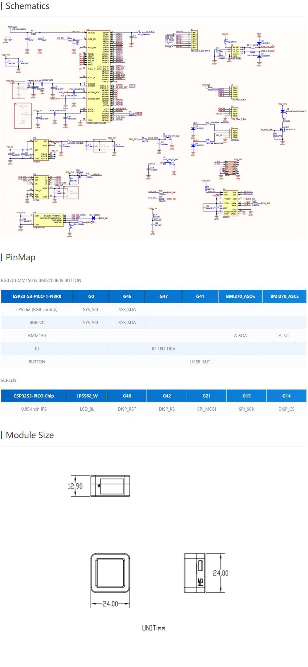 - Integrated ESP32-S3-PICO-1-N8R8 main controller