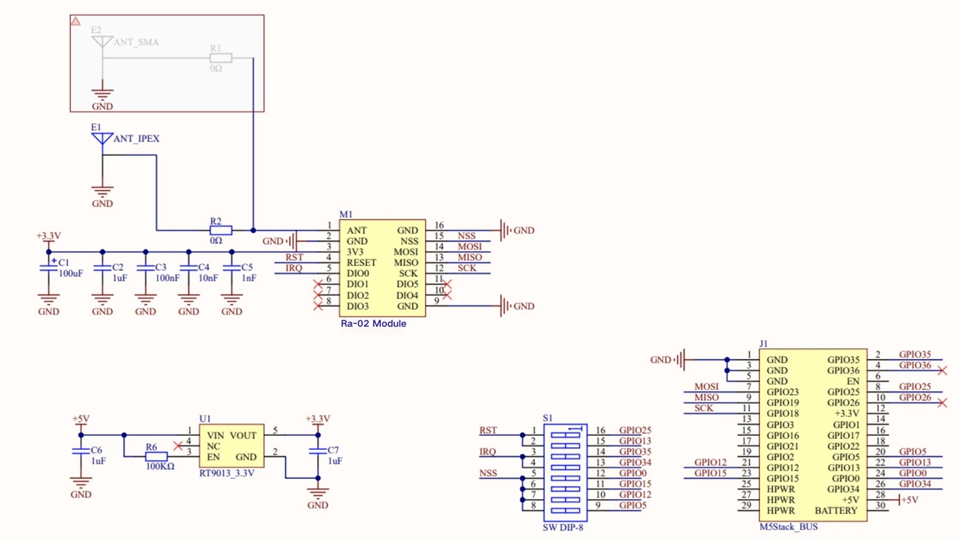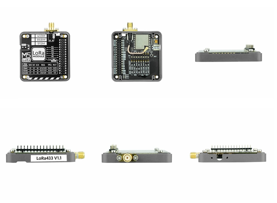 - The LoRa433_V1.1 Module is a LoRa communication module within the M5Stack stacking module series, operating at a frequency of 433MHz and utilizing the Ra-02 module (chip SX1278) solution. This module comes standard with an external SMA antenna and also reserves two patch MCX antenna socket interfaces, allowing users to freely switch between different types of antennas according to their needs. Additionally, the module features a DIP switch, enabling users to flexibly switch between different communication pins, allowing for the use of multiple stacks simultaneously, offering more customization possibilities and flexibility. It is suitable for applications in remote monitoring, smart cities, home and industrial automation, and Internet of Things (IoT) devices.