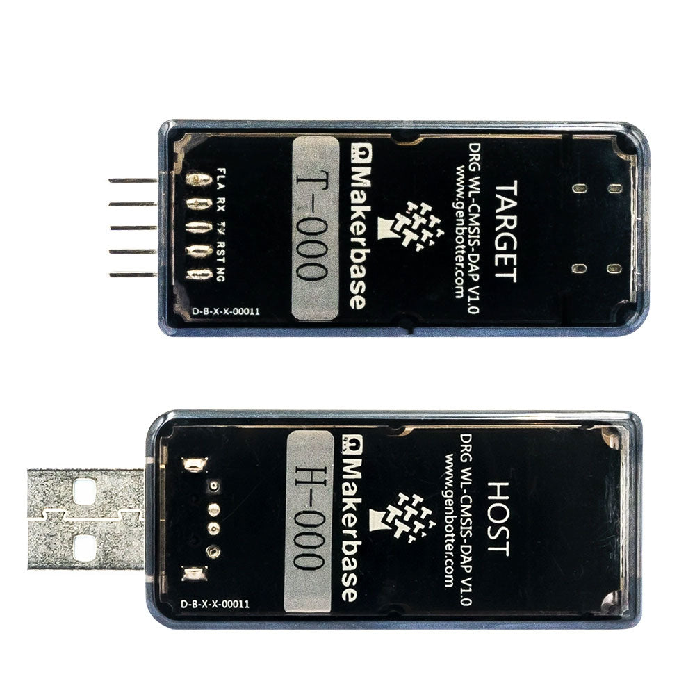 - DRG WL CMSIS DAP V1.0 is a wireless debugger based on CMSIS DAP, plug and play, fast, and supports virtual serial ports. The wireless debugger includes HOST/TARGET, based on 2.4G wireless communication, it can program burn and debug the target within 10m.