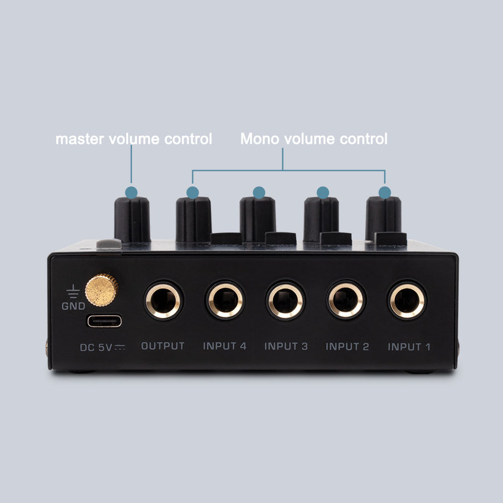 - Mixer audio is divided into two channels. Stereo version-male connectors of 1 / 4-inch TRS stereo audio cable must be used for input and output connections (1 / 4-inch male-to-male stereo audio cable, TRS cable is Keypoint) then press the toggle key. Mono version-Mix 4 mono signal inputs into 1 mono signal output (1 / 4-inch TS male-to-male connector for input and output connection).