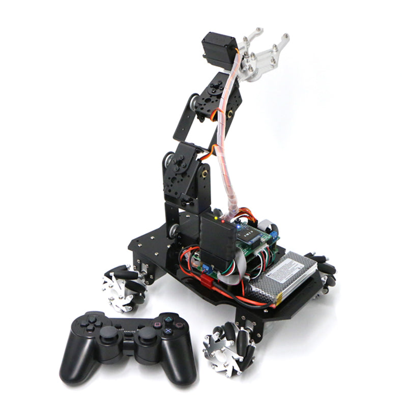 Mecanum Wheel Robot Car Chassis + Mechanical Robotic Arm without Suspension System