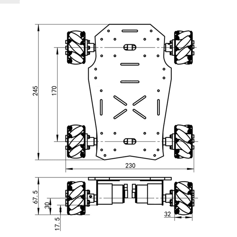 Encoder: the wheel makes one rotation and outputs 390 pulses (the tire can distinguish 0.23° rotation)