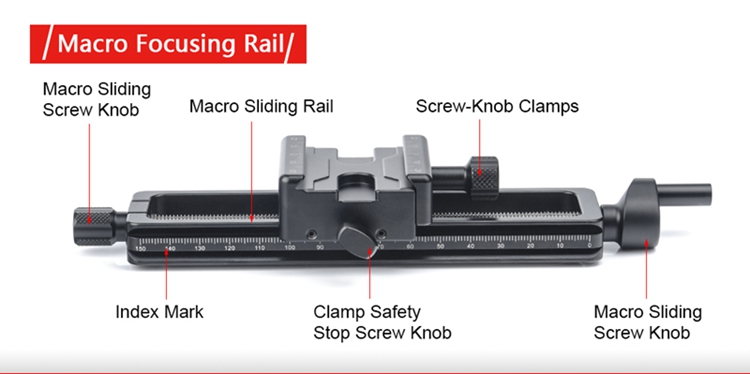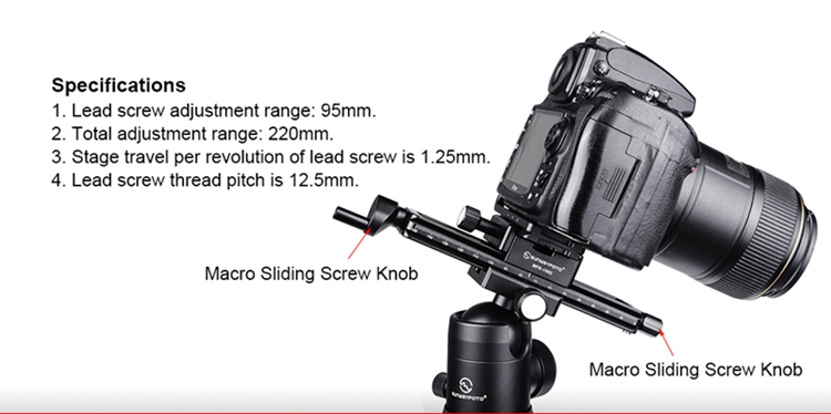 MFR-150S Macro Focusing Rail Slider with Screw-Knob Clamp Load 7KG Dovetail Groove For Arca RRS Clamp