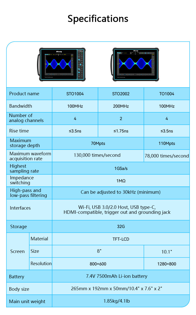 Micsig STO2002 200MHz 1GSa/s Tablet Oscilloscope 2 Channel Digital Oscilloscope with 6 Decodings